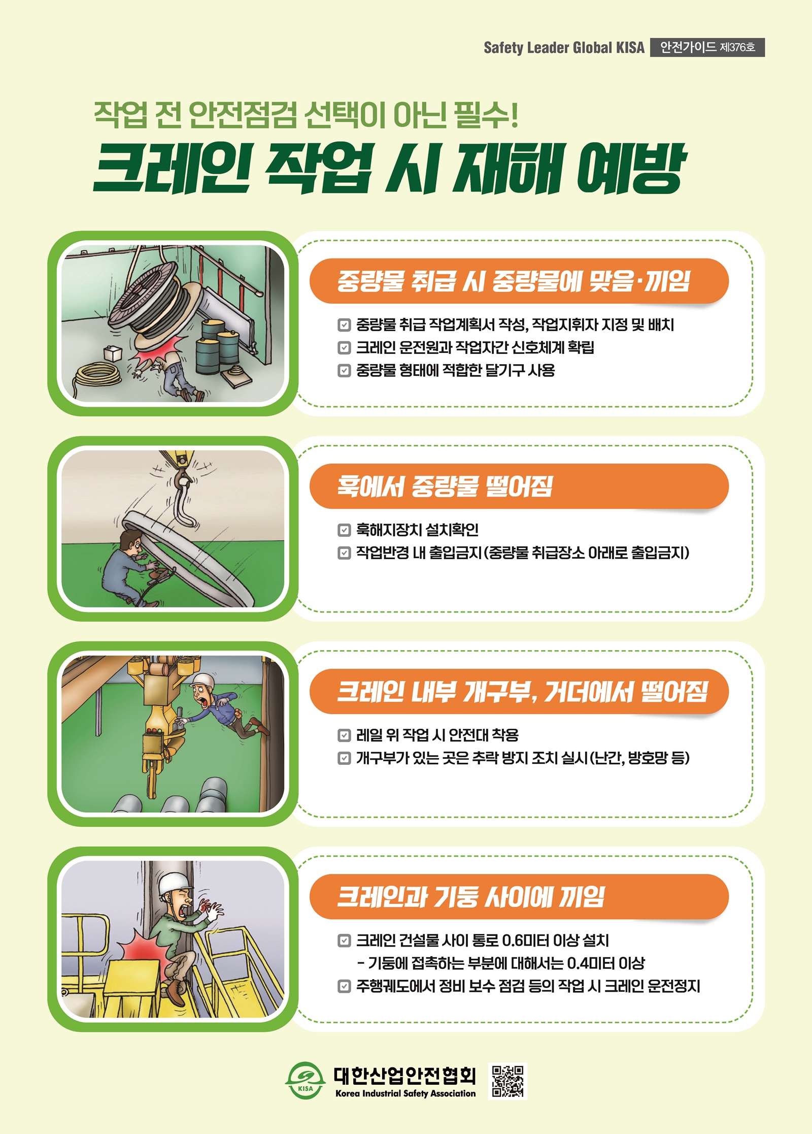 안전포스터 안전포스터 안전보건표지 교육자료 재해사례 서식자료 크레인 작업 시 재해 예방 ⓒ 대한산업안전협회 ∥ 무단도용, 복제 및 재배포 금지 제376호_크레인 작업 시 재해 예방.jpg 이전글 작업 전 안전전검회의(TBM), 이렇게 하세요! 다음글 통로 및 계단 넘어짐 사고 예방 목록