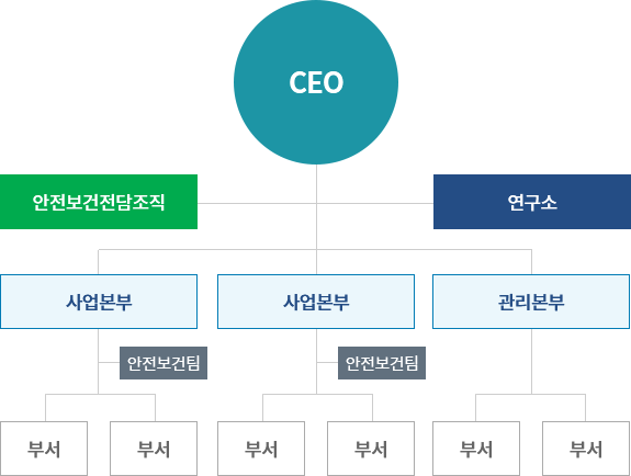 안전보건관리체계안전관리조직 구성 및 운영실태를 파악 및 분석하여, 적합한 안전보건관리체계 구축 방안 제시